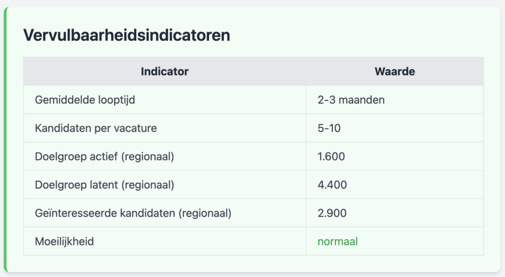 Naast en op basis van de doelgroepanalyse wordt een inschatting gemaakt van hoe moeilijk de vacature te vervullen is, op basis van concurrerende vacatures en schaarste van de doelgroep.